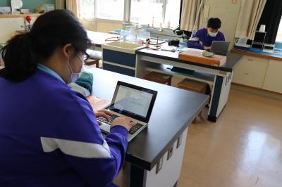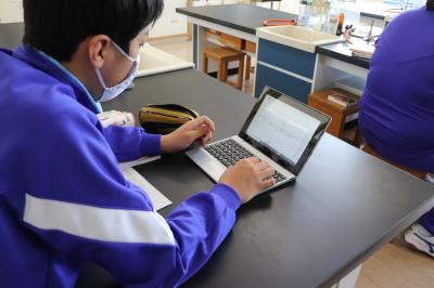 <3年生の理科>パソコンを使って授業の振り返りをしていました。