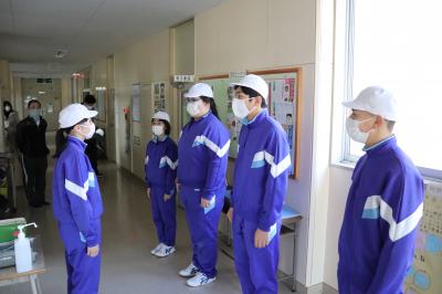 清掃後は活動の振り返りです。明日以降の清掃に生かせるよう、それぞれの清掃場所の反省を共有しています。