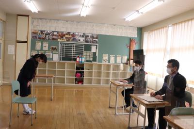 面接官は、校長先生と教頭先生です。重い緊張感は、本番さながらのものでした。