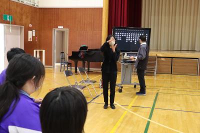 歌についても一通り練習しました。普段の音楽室とは響きが違い、困惑する様子も見られましたが、力いっぱい歌っていました。