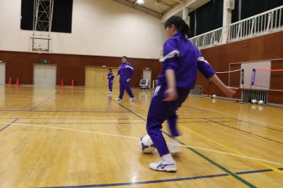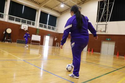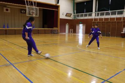 インサイドキックの練習から、5人でのパス回しです。相手の足下にパスをするのは難しいですが、「止める・蹴る」を意識して繰り返し練習しています。