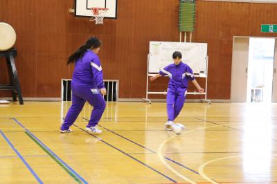 体育の授業では、バスケットボールが終わり、サッカーが始まりました。体育館をいっぱいいっぱいに使って学習しています。