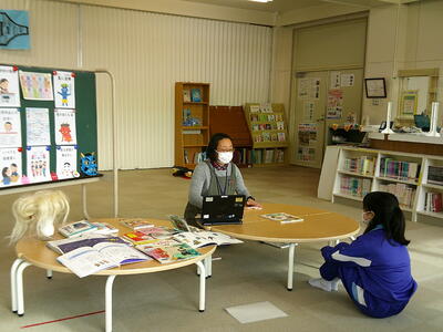 今日は学校司書の先生、読書サポートティーチャーの先生の来校日。