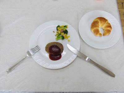 続いてはメイン《ハンバーグ ブロッコリーソテー添え》