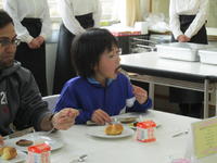 子どもたちもにこにこ顔で食べていました。