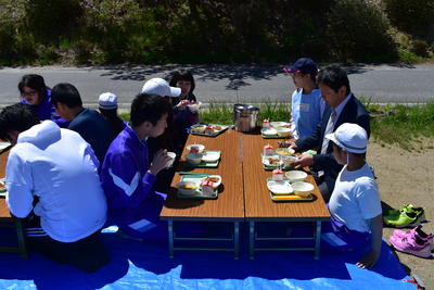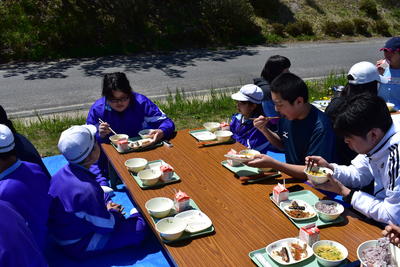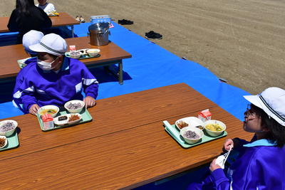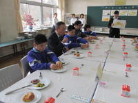 時程が違うこともあり、少しの時間しか一緒に食べることができませんでしたが、桶売の四季に触れ、楽しく給食を食べることができました。