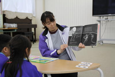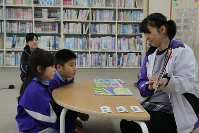 中学年の児童に司書の先生が読み聞かせをしてくださいました。