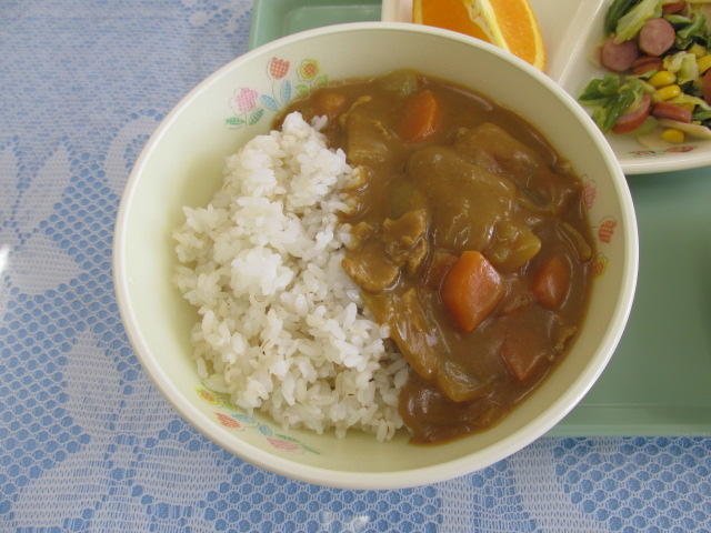 今年度からカレーの日は、どんぶりを使用してカレーライスにして食べることになりました。