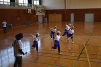 5、6校時に、全学年でダンス体験をしました。目標は、運動会で披露するダンスをつくりあげます。