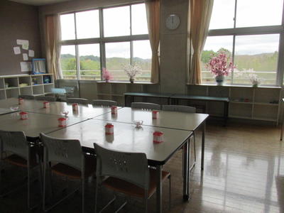 栄養教諭のアイディアと用務員さんのセンスで、すてきな会場ができあがりました。
