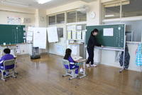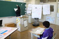 本校では、完全複式の授業を行っています。2学年の異なった教材を同時に指導する必要から、間接指導と直接指導を交互にバランスよく組み合あわせながら指導します。