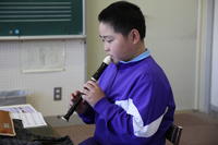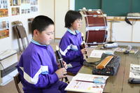 高学年は音楽科のリコーダーの学習です。5・6学年が同じ「茶色の小びん」を練習中。実技的な教科等では2学年を見通し、指導時期を合わせて一緒に学習します。
