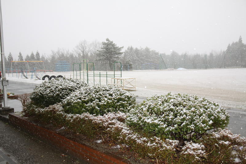 標高500mを超える本校ですが、4月も半ばになろうかという時期にまさか雪!