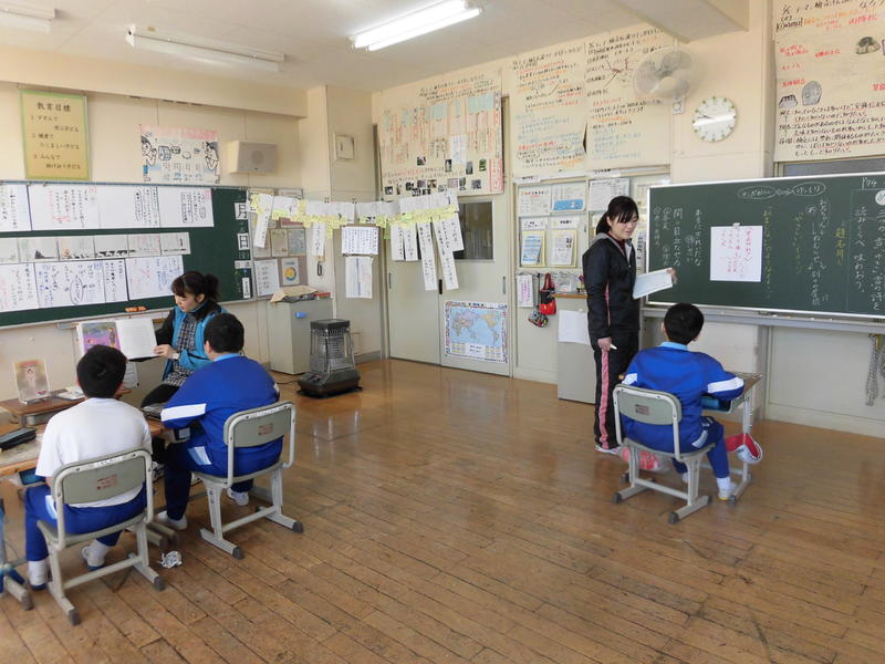 3年生は想像豊かに詩の授業。4年生は学校司書の方から読み聞かせをしていただいています。