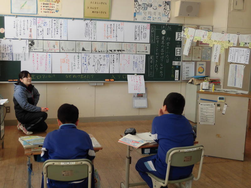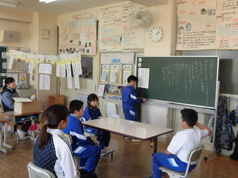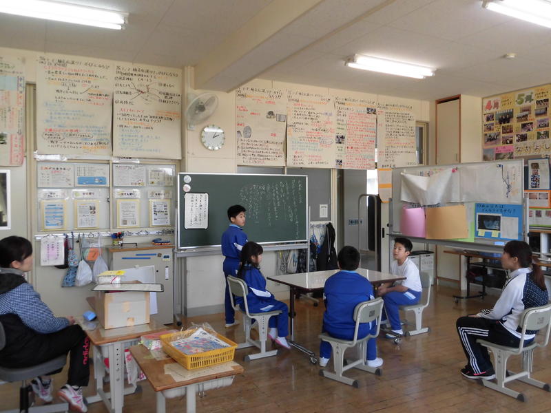 4年国語科「初雪のふる日」では、分析批評「読みのものさし」から、魔界の出口やなぜ抜け出せたのかについて討論していました。登場人物の意味についても深い考察。