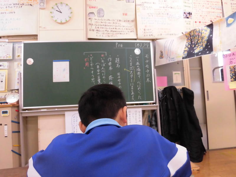 3年生は国語科「モチモチの木」で心に残ったことを明確にしポスターづくりを進めています。