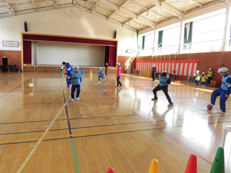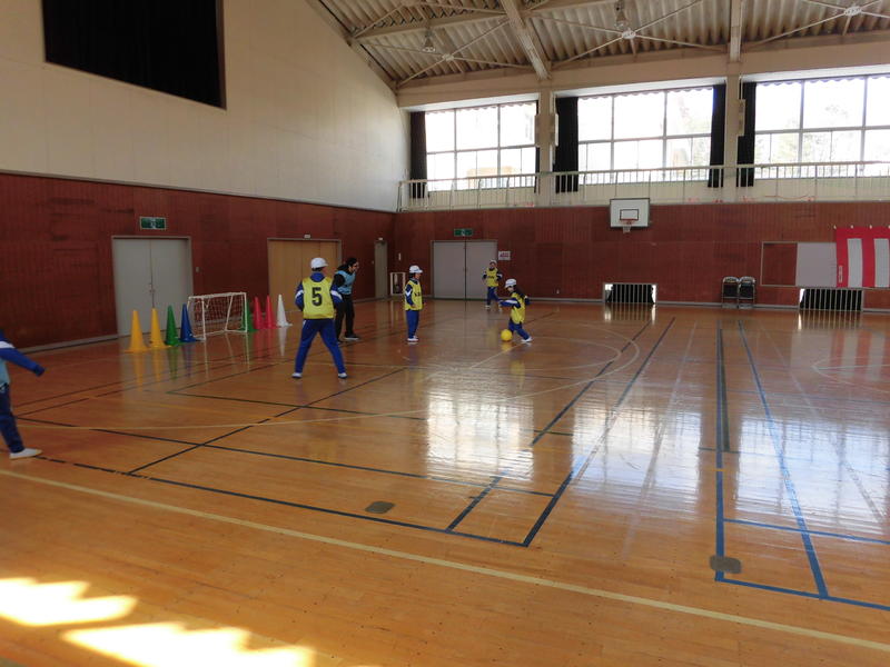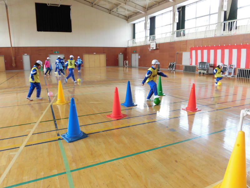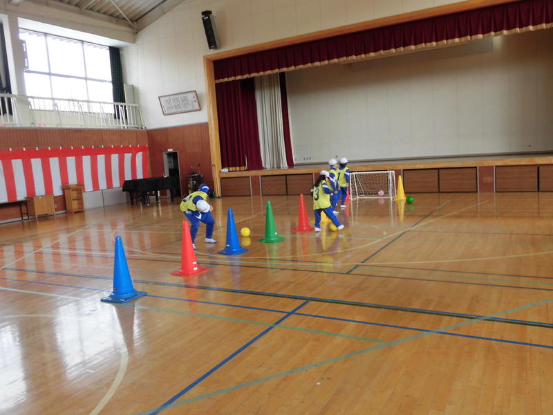人が少ないので。コーンを敵チームに見立ててのイメージ練習です。