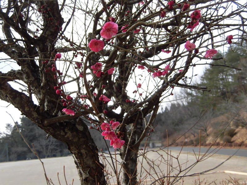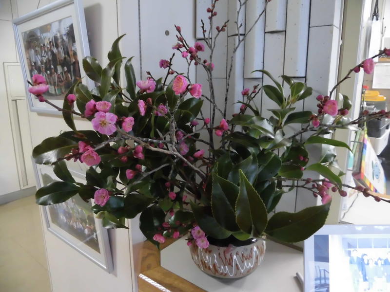 校舎前の紅梅も見頃です。今年は1ヶ月くらい季節が早いかも、の声が聞かれます。