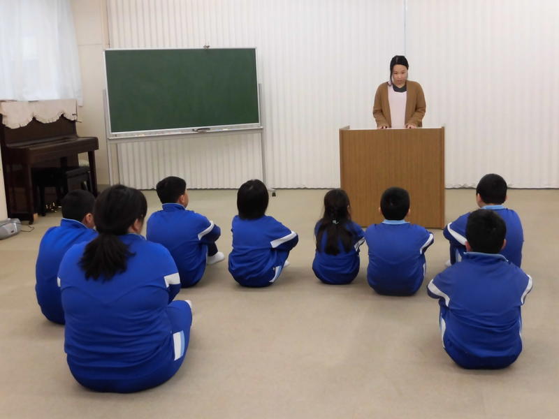 2019年3月4日 08時52分全校集会では、養護教諭よりインフルエンザ予防をはじめ健康な生活についての話がありました。
