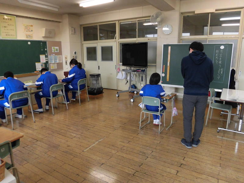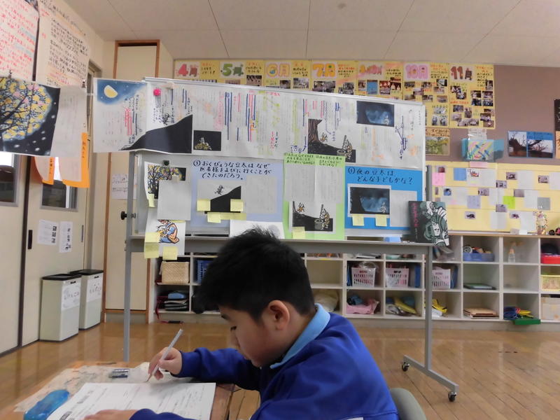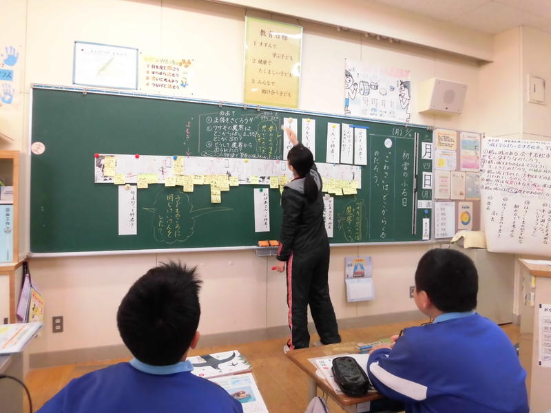 4年生は「初雪のふる日」。白うさぎ、行列、よもぎ・・・、その正体についてさぐっています。