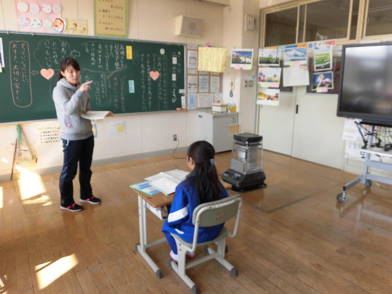 3年国語科「モチモチの木」、夜の豆太について迫っています。昼との対比から。