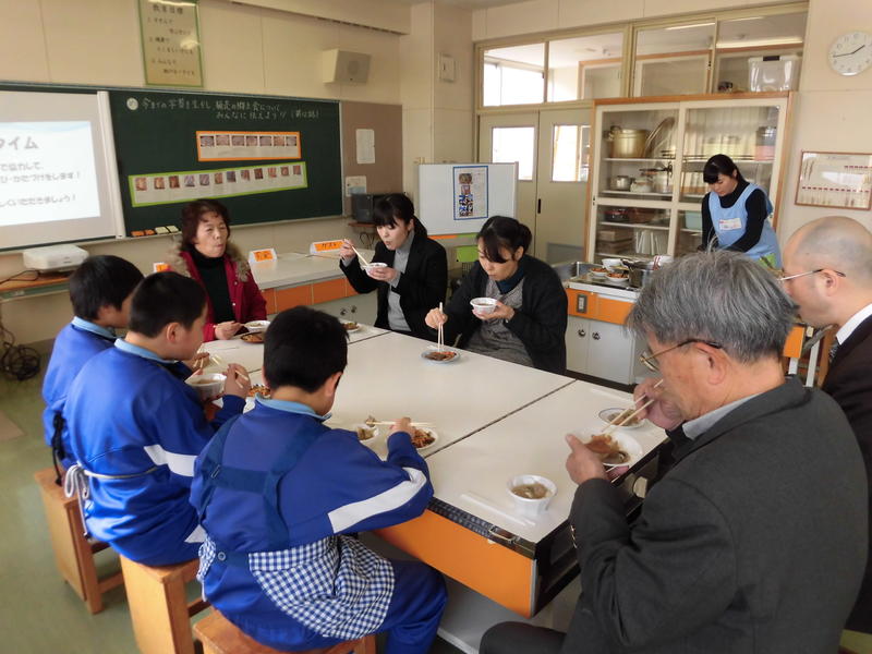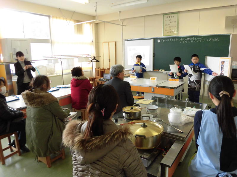 3・4年生は桶売ツアーガイドでお世話になった方もお招きしての郷土料理の発表と会食。