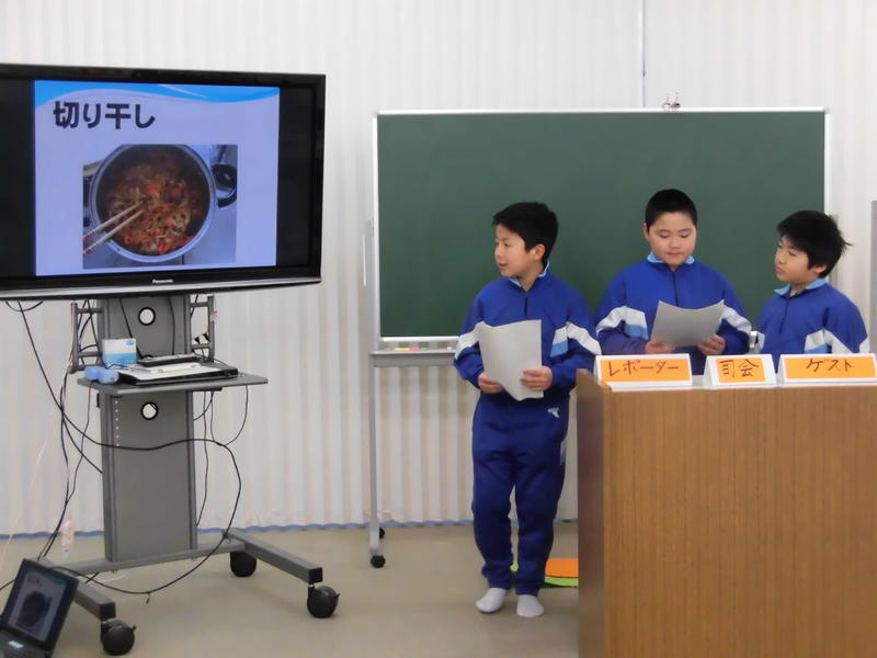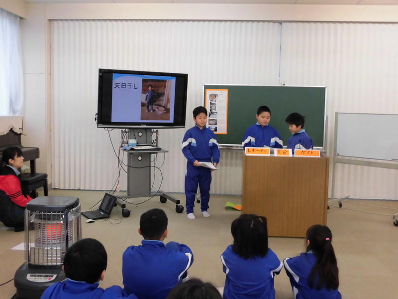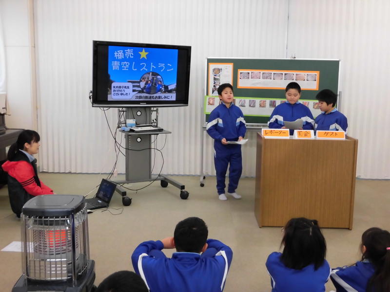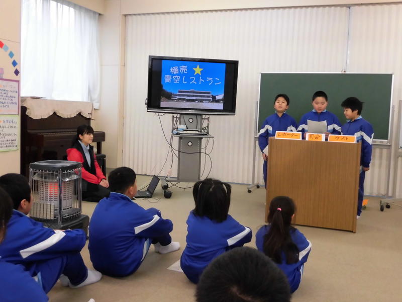 総合的な学習の時間「桶売グルメガイド」をかの青空レストランの番組風にして発表しました。