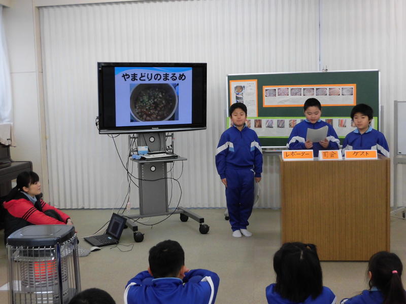 今日の全校集会での学習発表は3・4年「桶売青空レストラン」。