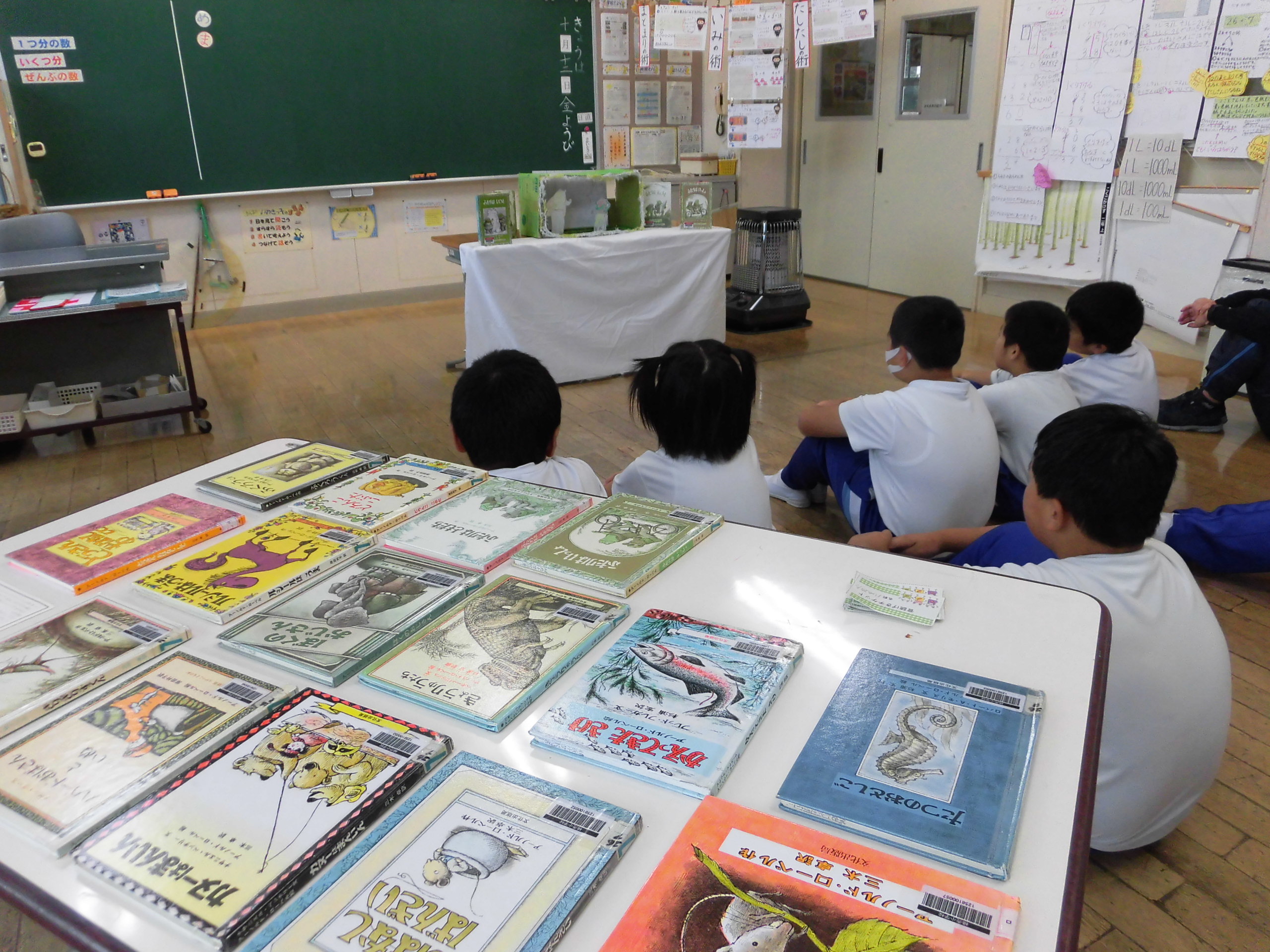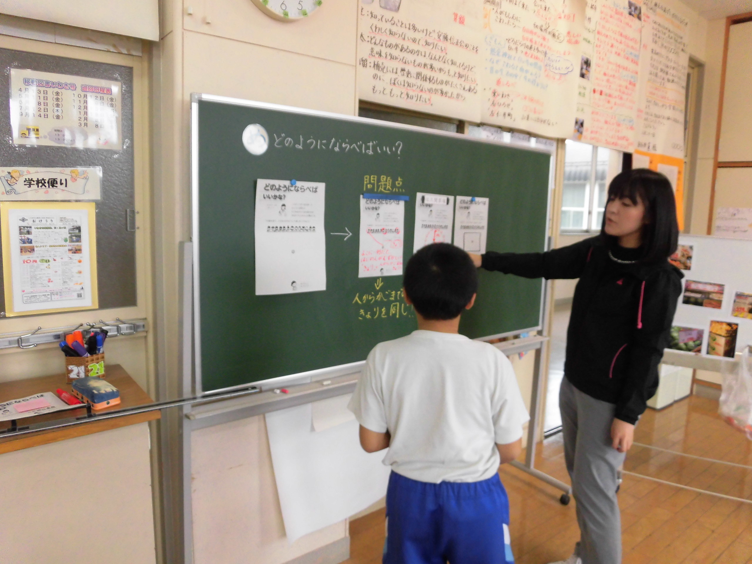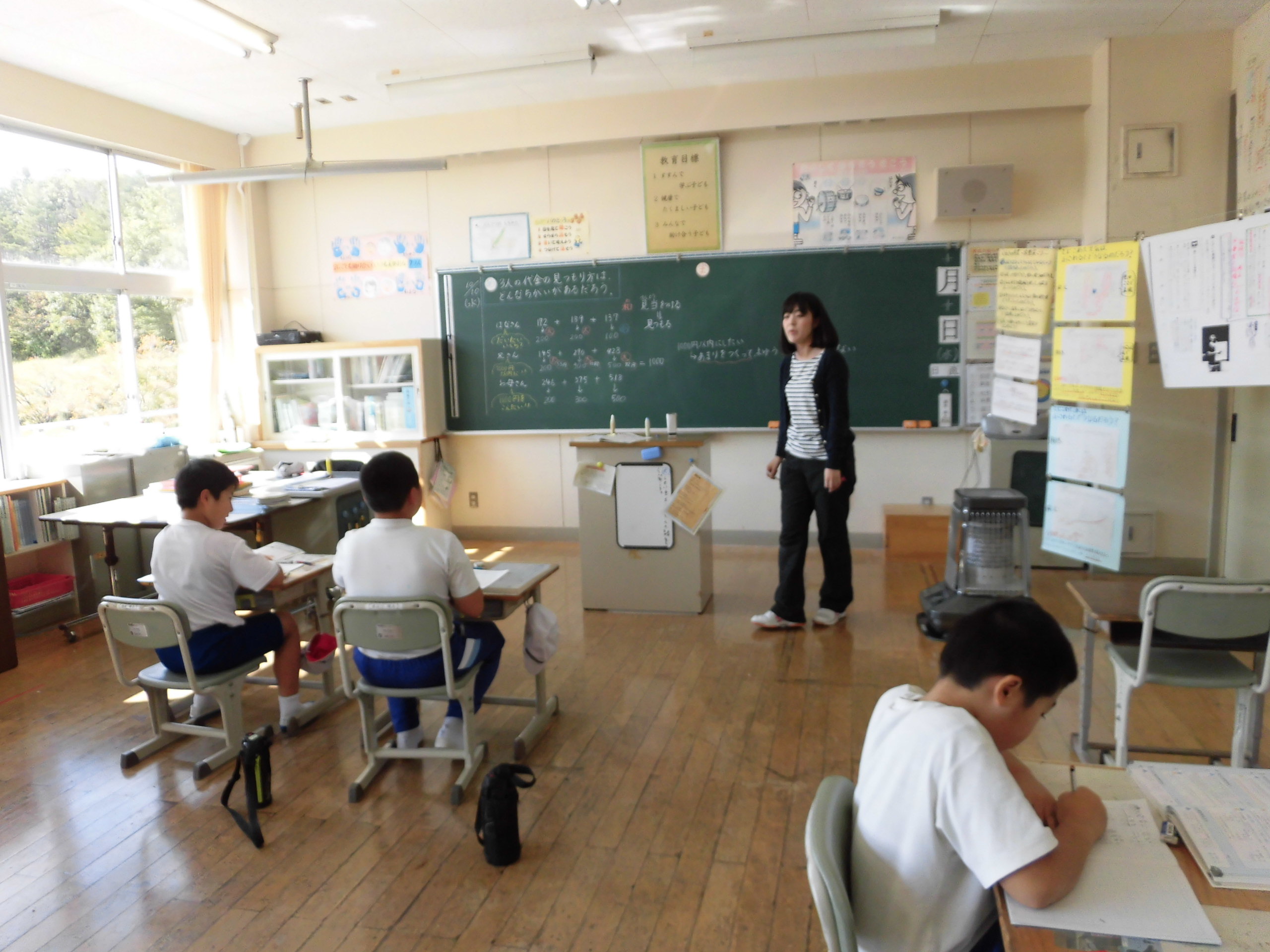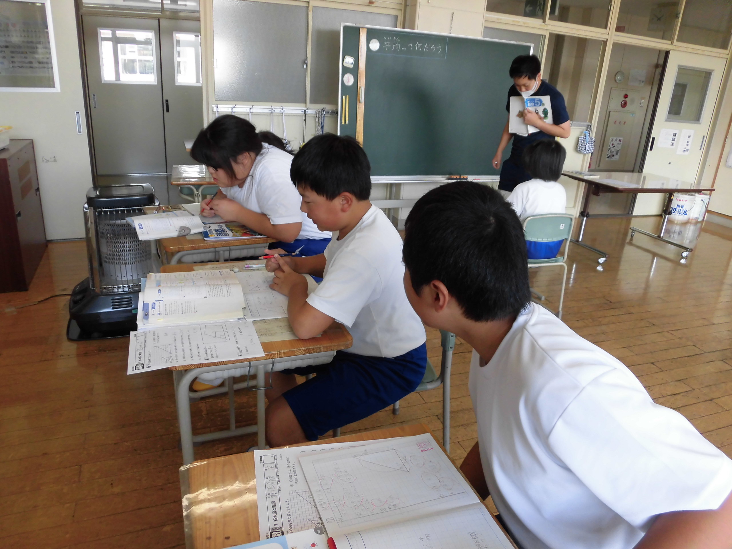 6年生は、自分たちで問題を進め、自分たちで答えの確認をしています。5年生は平均の学習。