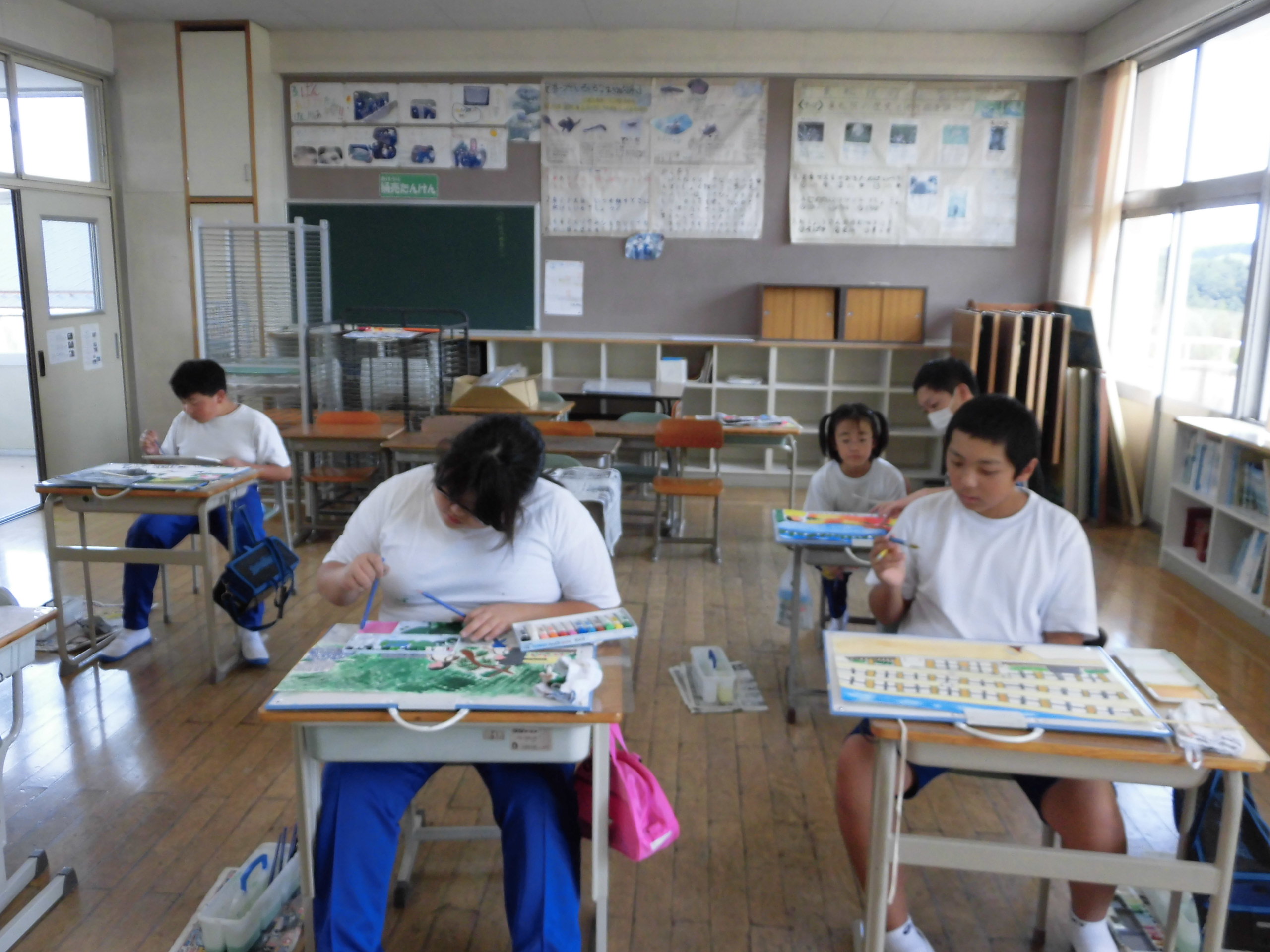 5・6年は色のつき方などを別な用紙に試しながら、慎重に水彩画を仕上げていました。