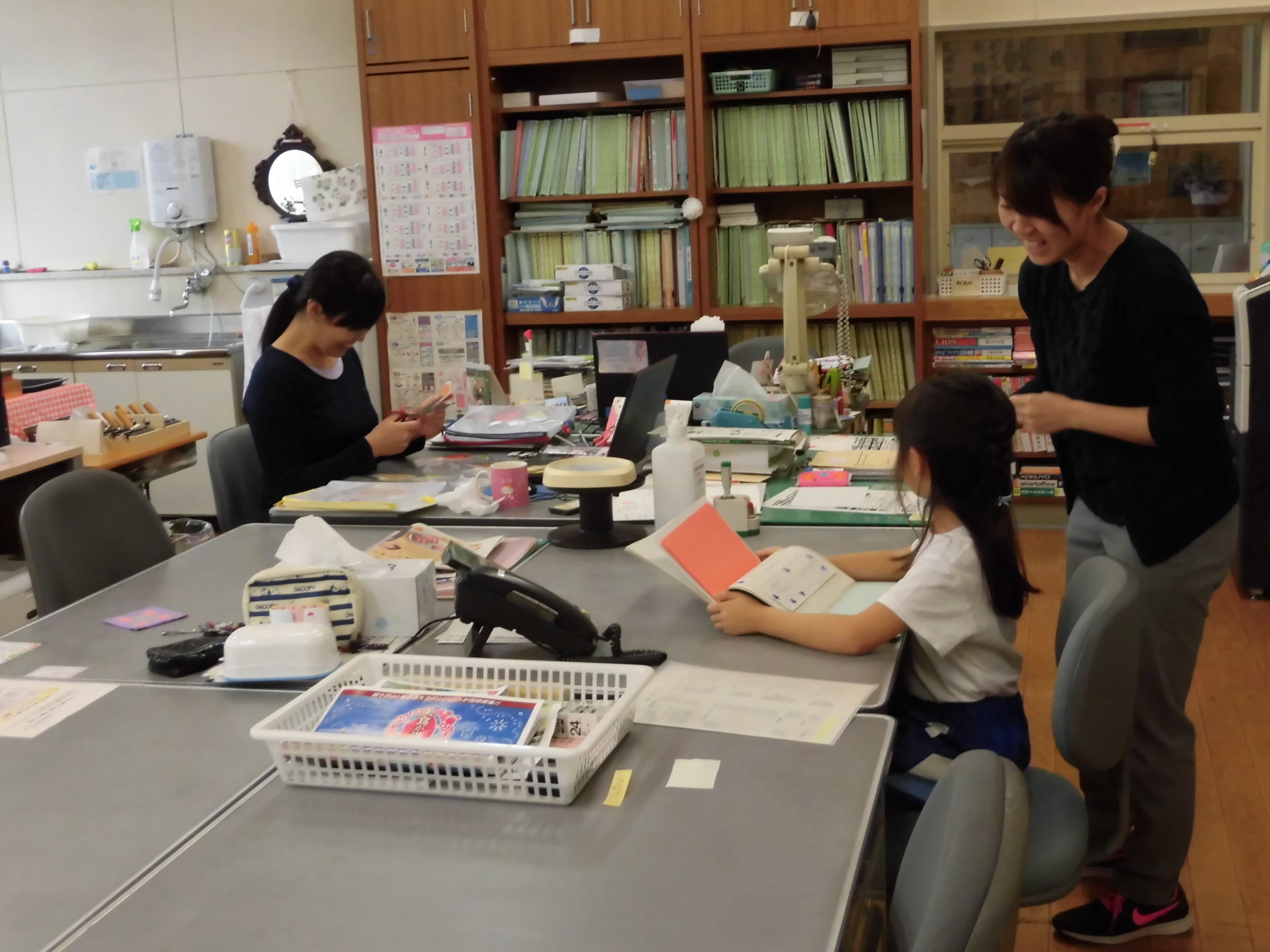当の2年生は、生活科で伺う商店へ電話でのアポ取り。教室で原稿を書いて練習しました。