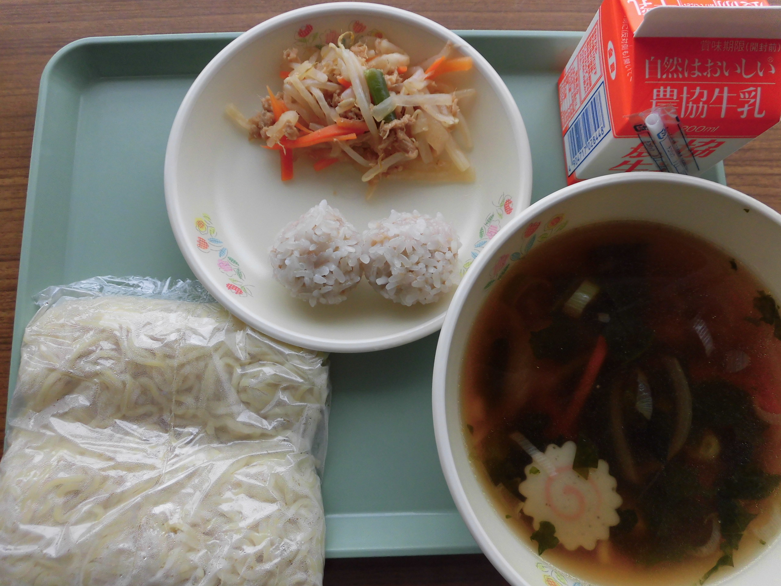 冷たい雨降る桶売の今日の給食に、餅米肉団子がでました。おいしくいただきます。