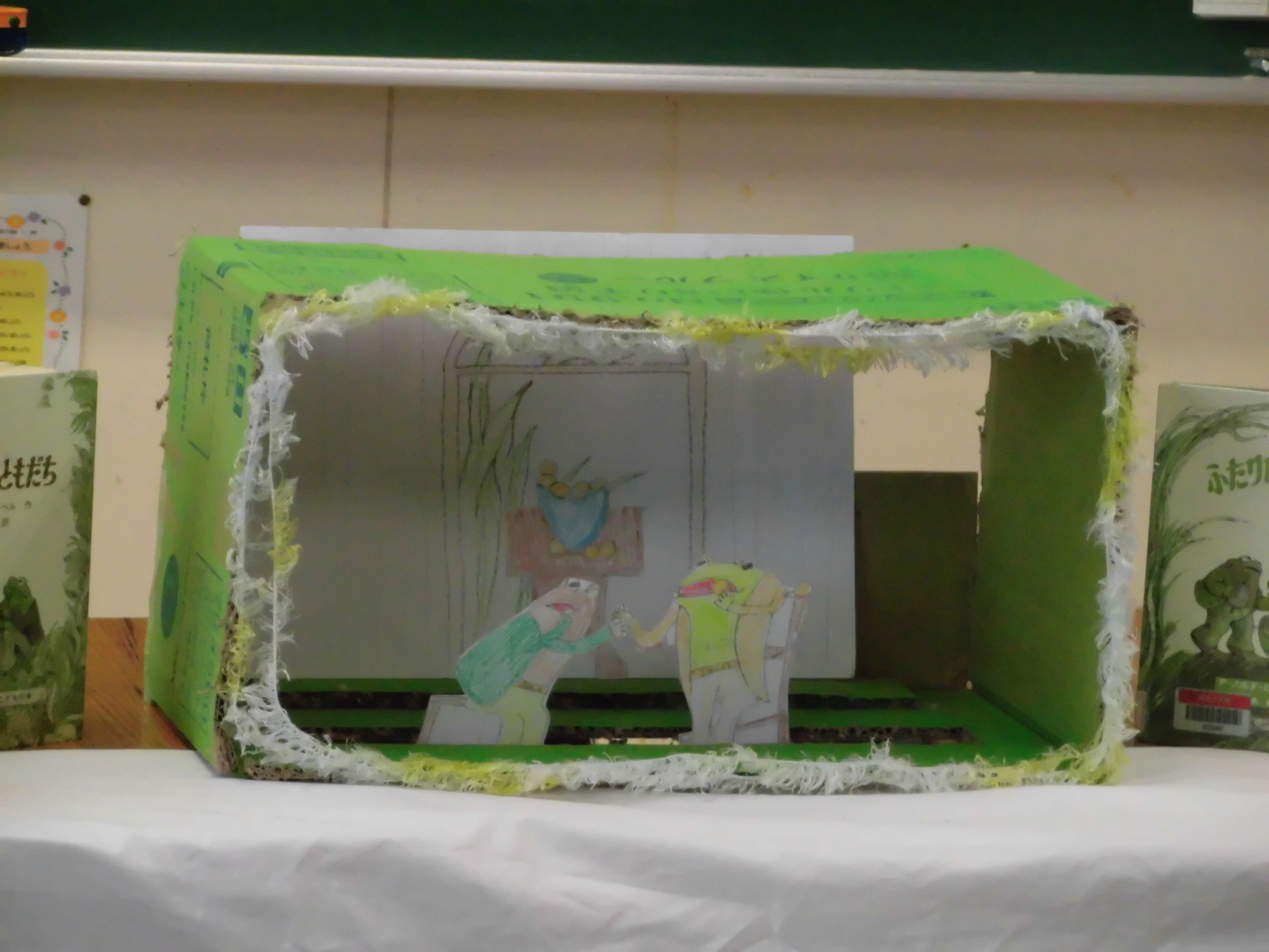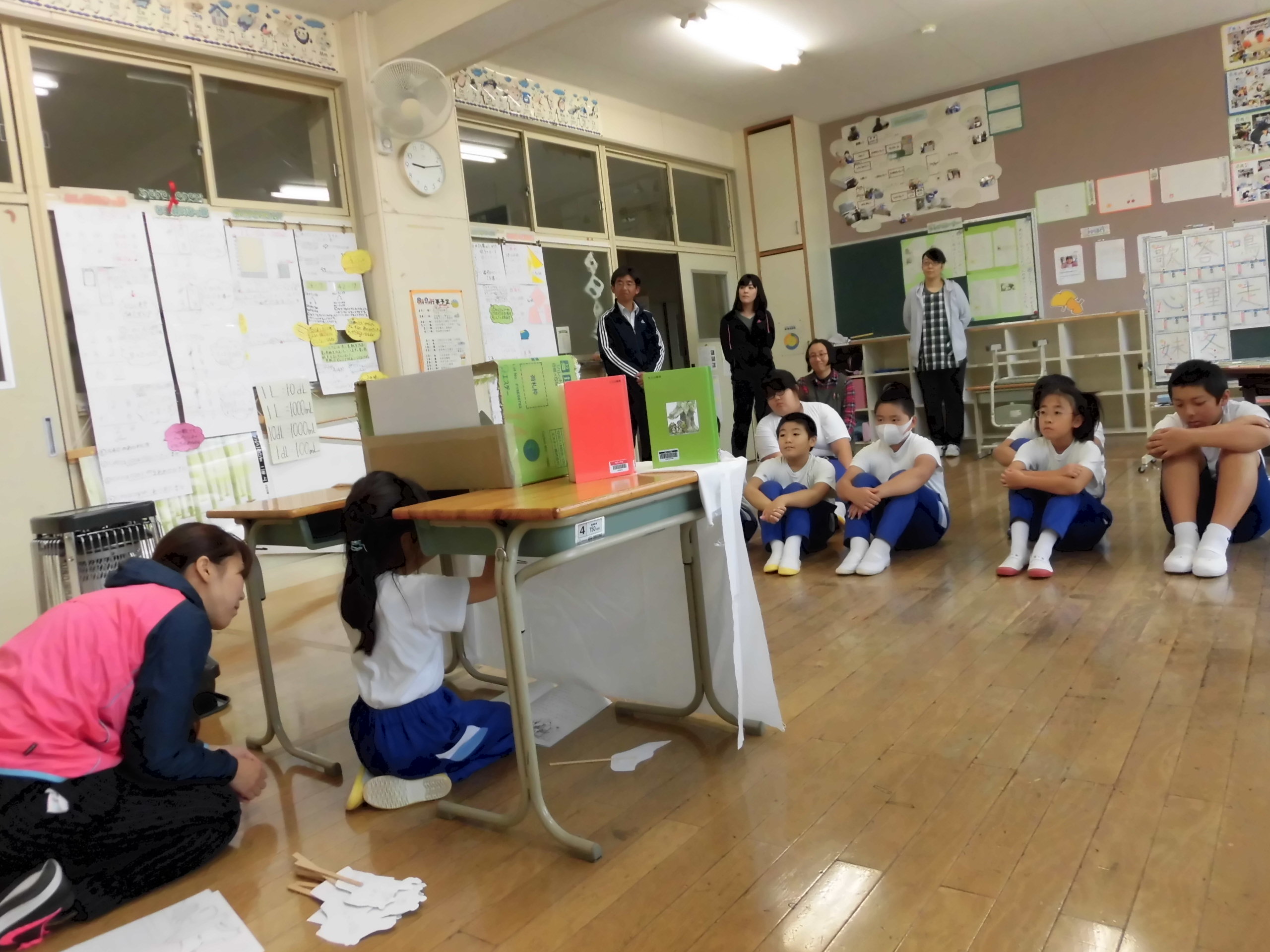 2年生の音読劇(ペープサート)に心震えました。先生と二人で披露しているのかと思いきや全てのことをたった一人で行っていたのでした。セリフをはじめ、両手での人形の動きも、バックの模様替えも・・・。その姿を目にしたとき、感動があふれだしました。すごい練習量、すごい音読劇。