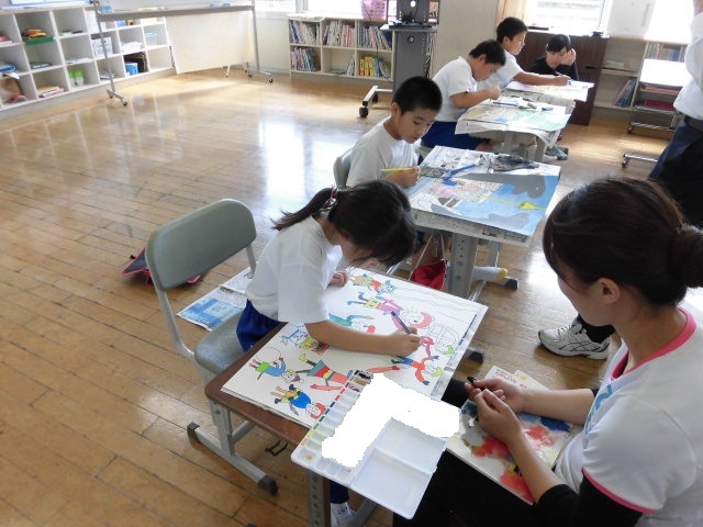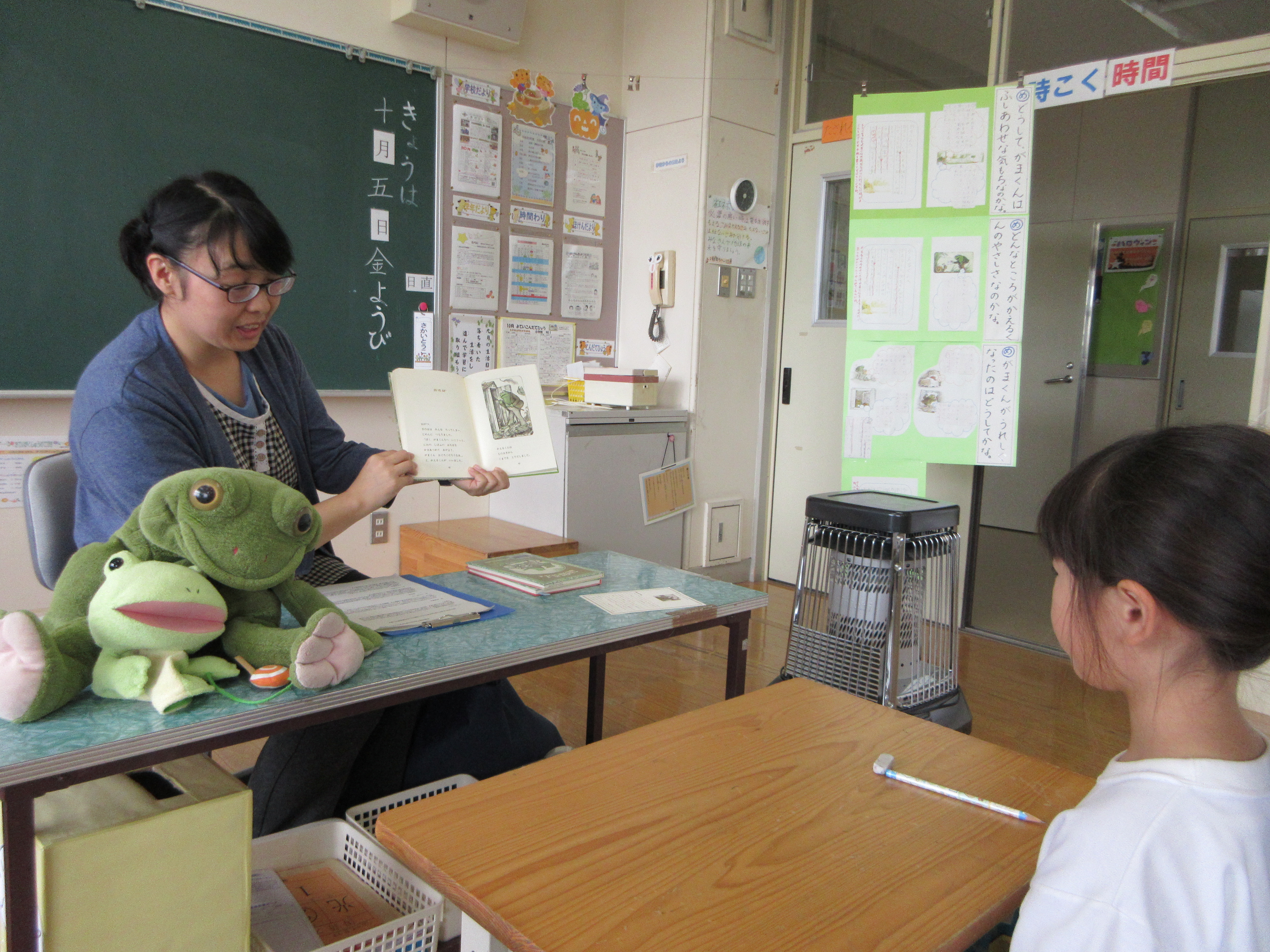 3時間目には2年生の国語の授業で、学校司書さんに本の紹介と読み聞かせをしていただきました。アーノルド ローベルの作品です。図書室にたくさんありました。