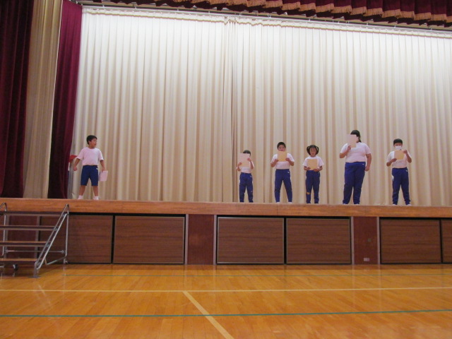 今日の4時間目の体育は、全校生で「Tボール」を行いました。今日は、主に守りの練習をしました。全校生が一桁なので、団体で行う競技は人数が足りませんが、何でもみんなで楽しんでいます。