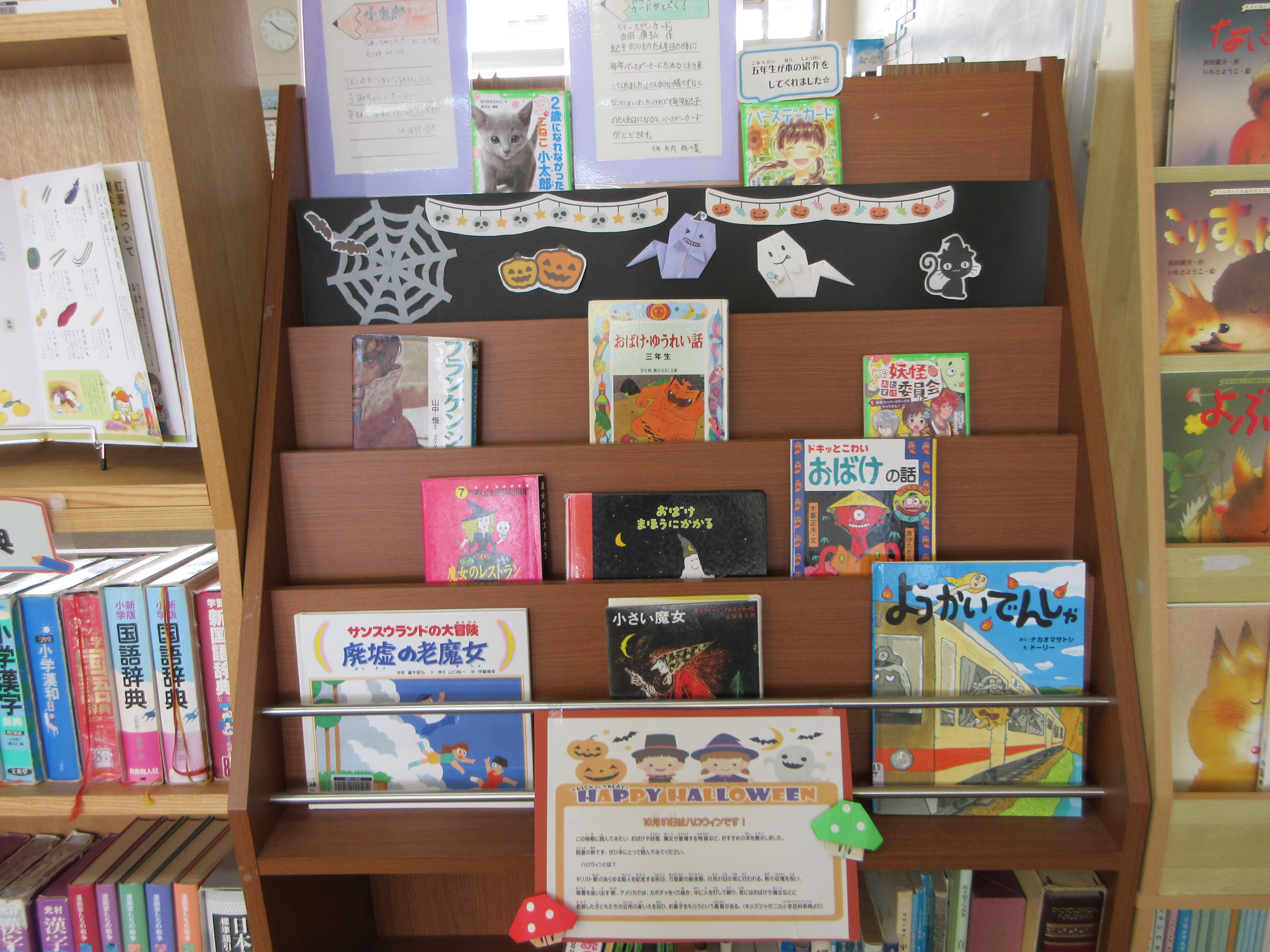 幽霊?が出てくるお話なのですが・・・なぜかと思っていたら・・・図書室入り口に答えがありました!