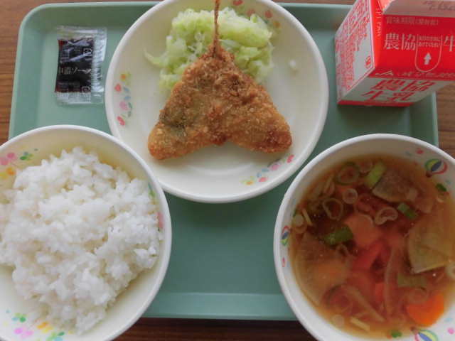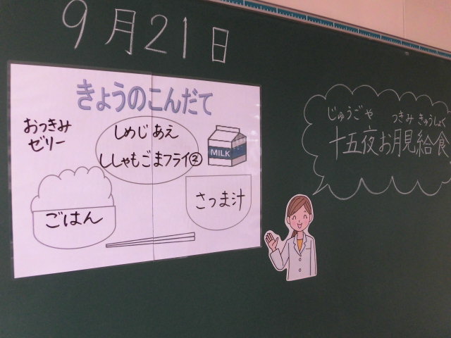今年は9月24日が中秋の名月、翌25日が満月。中秋の名月は「芋名月」・・・だから今日のお月見給食は「さつま芋汁」。冷たい雨が降る桶売、根菜類たっぷりのさつま汁が染み入ります。
