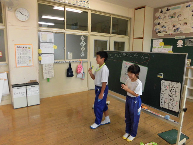 2年生は、主語と述語について、例を挙げ楽しく学んでいました。
