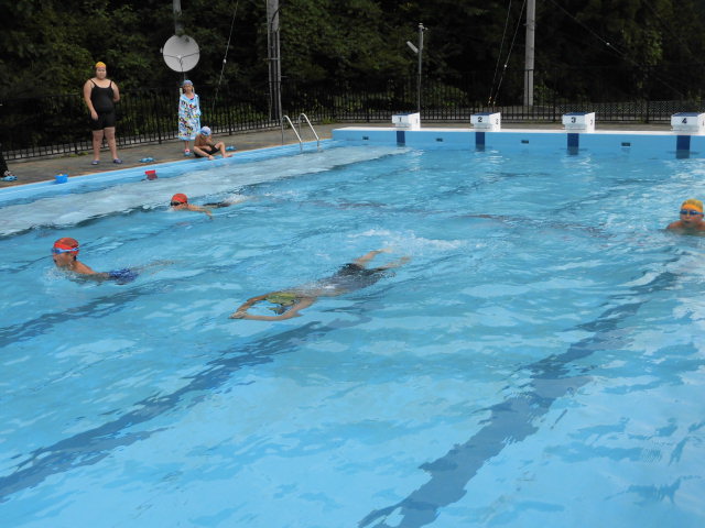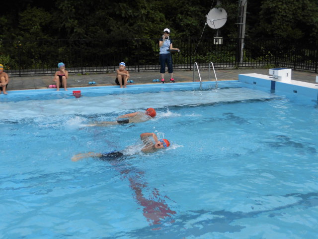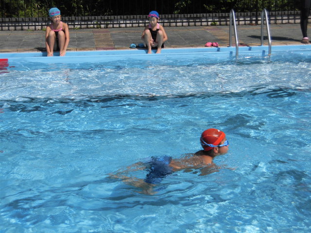 きれいなプールで、声援を受けて気持ちよく泳ぎます。