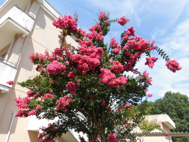 触り心地の良い木肌のサルスベリも美しさ満開。百日紅の名のとおり、長く花を楽しめます。
