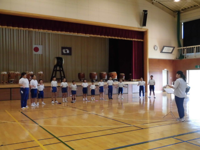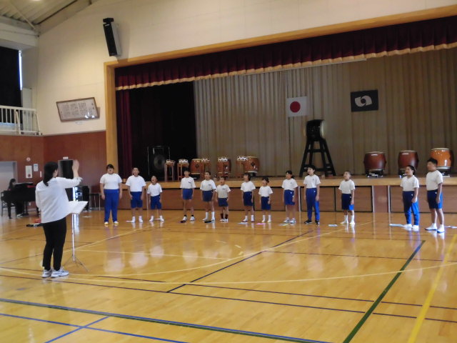 歌い出しや手拍子など、息を合わせ気持ちも合わせ、川前・小白井小の友達と懸命に練習。