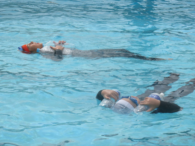 漂流物やペットボトル等の利用や衣服に空気を入れて浮き輪のようにすることも体験しました。