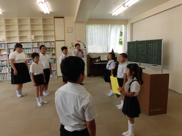 2・3・5年生の1学期の反省と夏休みのめあての発表。学年に応じたすばらしい内容と発表に臨む構えと姿に感心しました。1学期の成長ぶりが随所に見られた終業式でした。