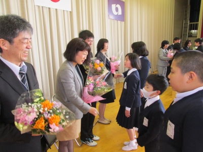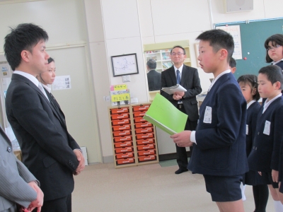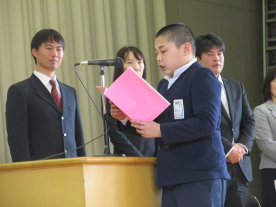 5年生のW君が、心を込めて4人の先生方に伝えました。