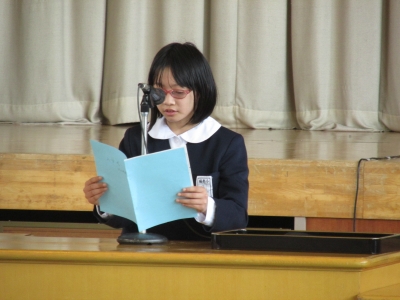 歓迎の言葉を6年生のRさんが立派に発表しました。