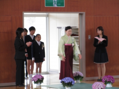 担任の先生を先頭に堂々と6年生6名の入場です。