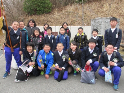 1年生から5年生までの11人が力を合わせて,6年生の卒業を祝いました。