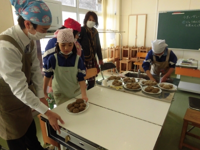 まつみれ汁でした。今日は主食、主菜、副菜、汁ものがそろった食育の
