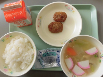 献立は、白ごまつくね、チャプスイ、ごはん、牛乳、こうなご です。