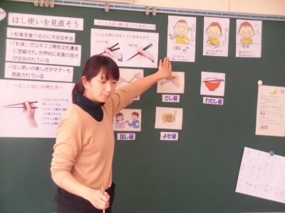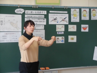 17日栄養士訪問があり、自分に合った箸の長さや箸使いのマナーについて